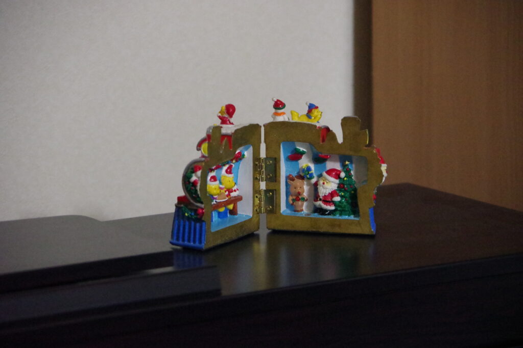 始まりの矢印と、幼稚園生の頃からあるクリスマスの置物。
