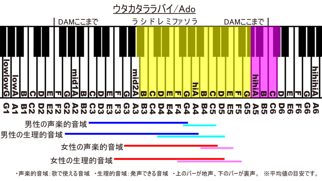 ウタカタララバイの音域:mid2A#~hihiC#