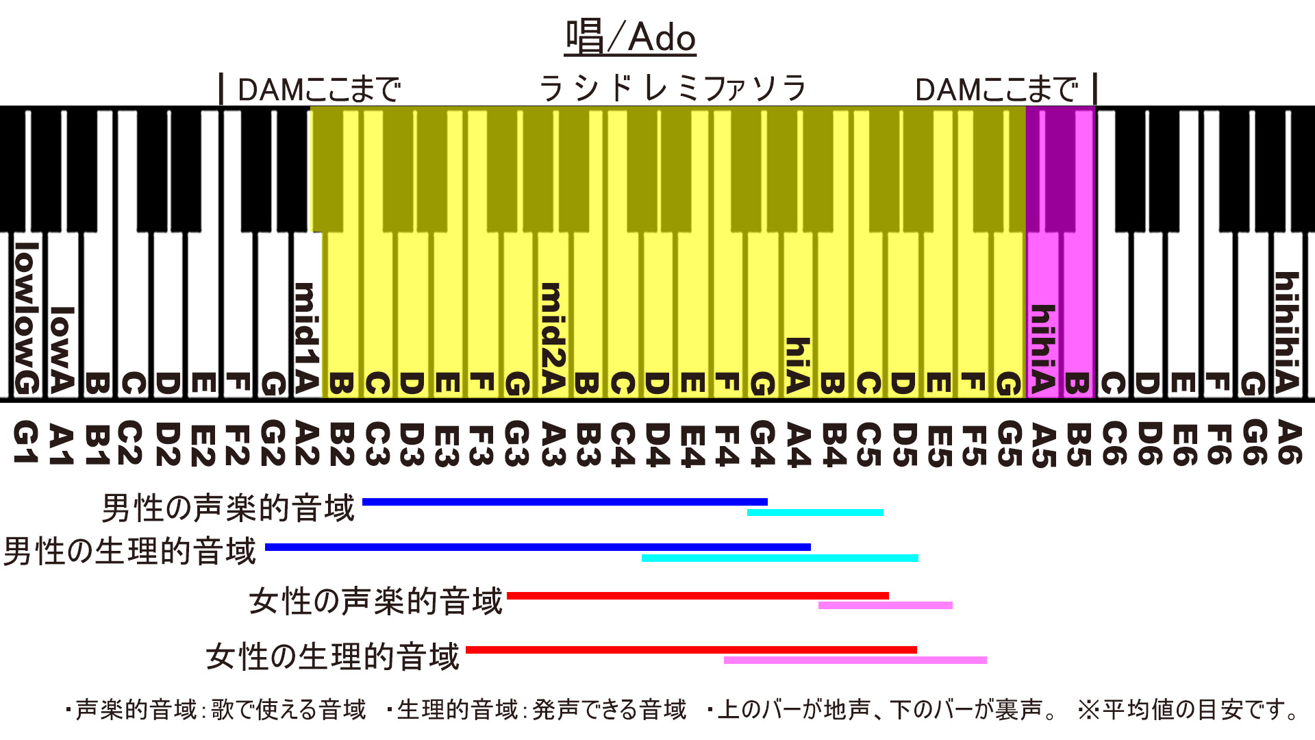 そのため、カラオケDAMの採点範囲のみの音域情報となっており、一部原曲と異なる場合がございます。
